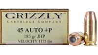 Grizzly Ammo 45 ACP+P 185 Grain JHP 20 Rounds [GC4
